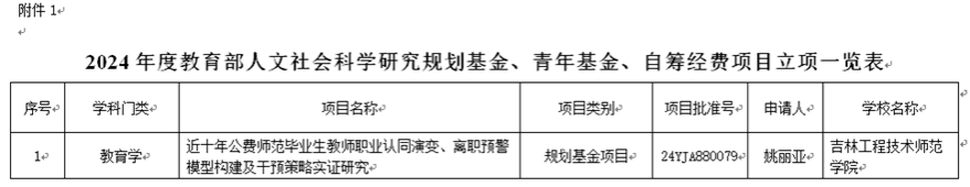 近日,教育部社科司发布了“2024年度教育部人文社会科学研究规划基金、青年基金、自筹经费项目立项”通知,beat365教务处姚丽亚教授主持的研究课题《近十年公费师范毕业生教师职业认同演变、离职预警模型构建及干预策略实证研究》获批立项。这是beat365在高级别科研项目申报方面取得的又一新成果。