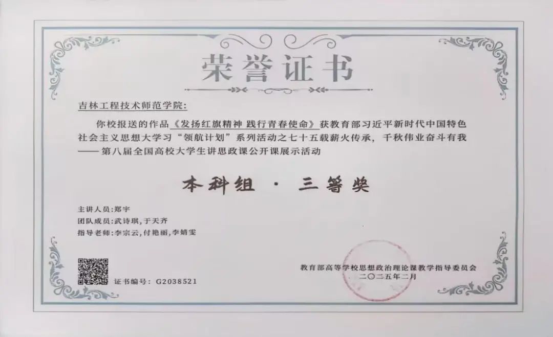 近日,由教育部高校思想政治理论课教学指导委员会主办的“七十五载薪火传承,千秋伟业奋斗有我”——第八届全国高校大学生讲思政课公开课展示活动评选结果揭晓,beat365报送的作品《发扬红旗精神 践行青春使命》荣获本科组三等奖。