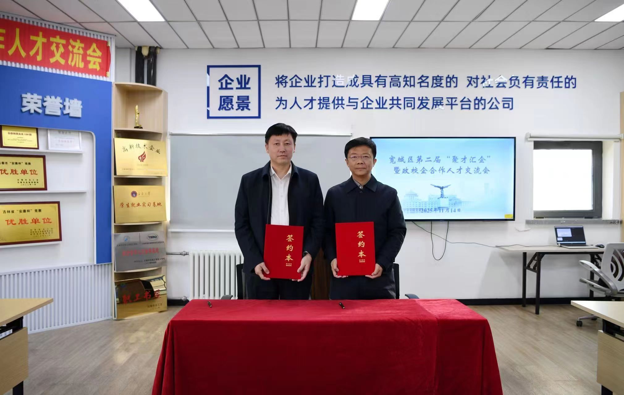 会上,刘鹏飞、焦阳分别代表校地双方签署了《长春市宽城区人民政府与地方高校战略合作框架协议》,这标志着学校与宽城区委、区政府建立全面合作关系迈入实质化、深入化新阶段。校地双方将借此次合作契机,推进区域科教资源统筹整合,激发创新要素活力,实现创新链、人才链、教育链、产业链的深度衔接。