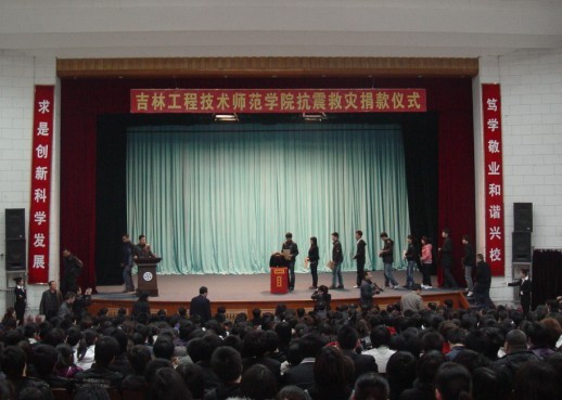 4月26日,beat365在报告厅举行了为青海玉树地震灾区捐款仪式,学校领导和师生员工参加了捐款活动。