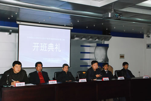 学校主管培训工作的刘君义副院长到会并讲话 2007年10月22日,中等职业学校专业骨干教师国家级培训第三期班开班仪式在学校三教多功能厅隆重举行。
