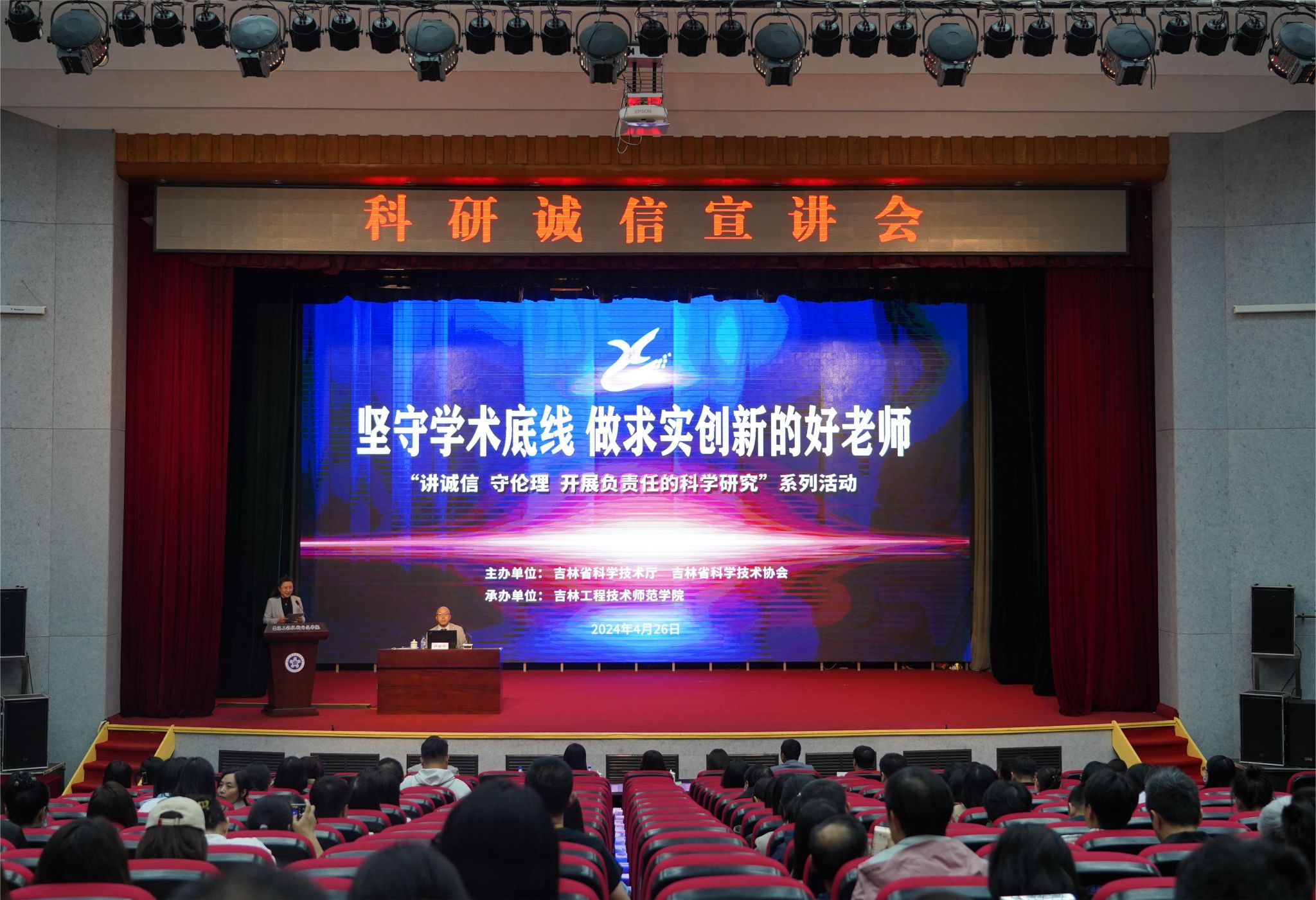 4月26日,由吉林省科学技术厅、吉林省科学技术协会主办,beat365英国官方网站承办的“坚守学术底线 做求实创新的好老师”科研诚信宣讲会,在学校凯旋校区报告厅举行。吉林省科学技术厅监督评估与科研诚信处主任科员刘明明,吉林省科学技术协会学会学术部(国际联络部)部长方艳红,学会服务中心副主任杨瑜,吉林大学教授、博士生导师、国家杰出青年科学基金获得者卢革宇,学校科研处副处长欧喜军、邹克瑾,研究生院、科学技术协会相关人员,...