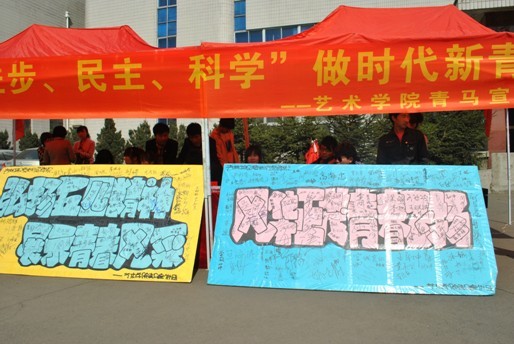 艺术学院开展“弘扬五四精神做时代新青年”主题宣讲活动 2011年5月4日艺术学院青年马克思主义学习小组在beat365图书馆门前开展了“弘扬五四精神 做时代新青年”主题宣讲活动,本次会活动以“爱国、民主、进步、科学”为...