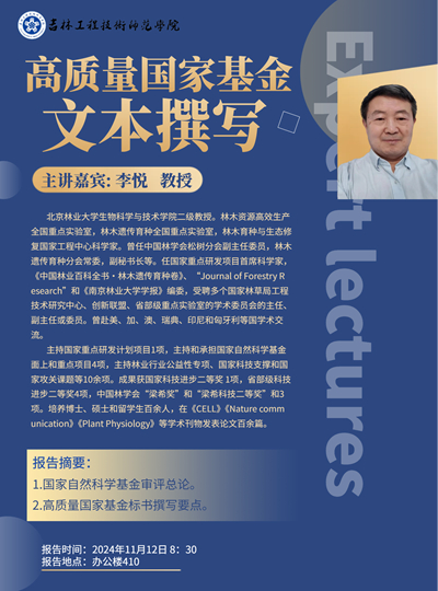 时间、地点:2024年11月12日8:30 凯旋校区办公楼410主办单位:科研处讲座内容:1.国家自然科学基金审评总论;2.高质量国家基金标书撰写要点。